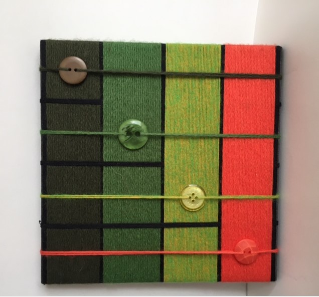 Since then I have discovered ‘yarn wrapping’ and have been making Bauhaus inspired wall art. This involves wrapping yarn around pre-cut ply board in layers alternating and varying the number of strands to create a yarn ‘painting’ of geometrical shapes.